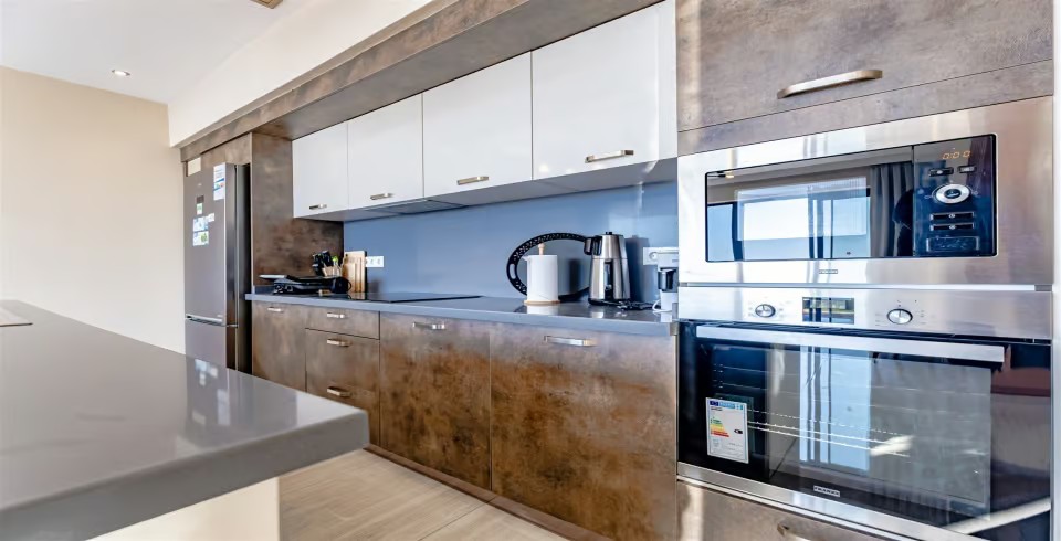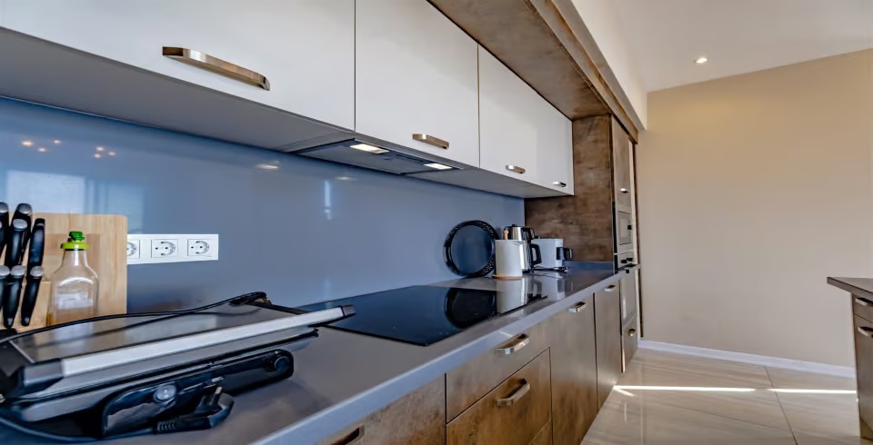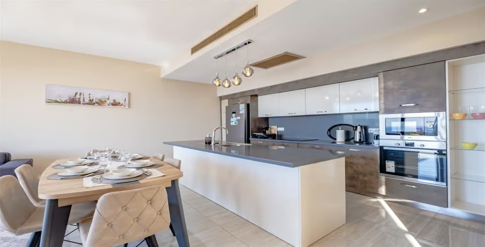 Mutfak : Modern Amerikan mutfakta yemek masası, buzdolabı, bulaşık makinesi, fırın, ocak, mikrodalga fırın, tost makinesi, yemek takımları, çatal-bıçak takımları, tencere-tava setleri ve bardaklar mevcuttur.