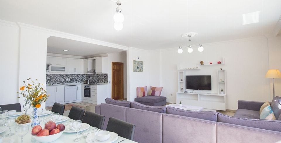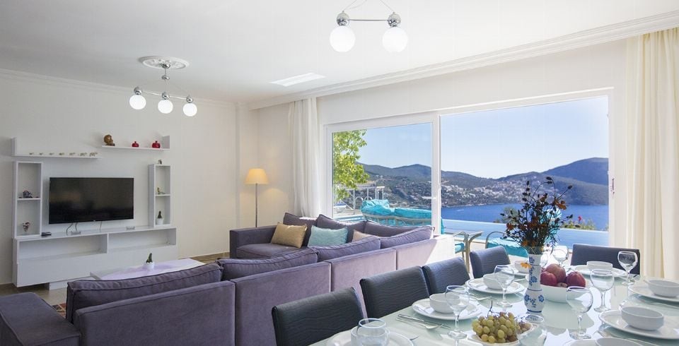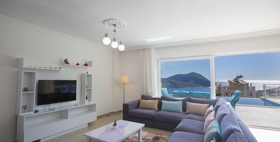 Salon : Salon içerisinde oturma grubu, TV, uydu alıcı, klima, sehpa bulunmaktadır. Salon deniz manzaralıdır.