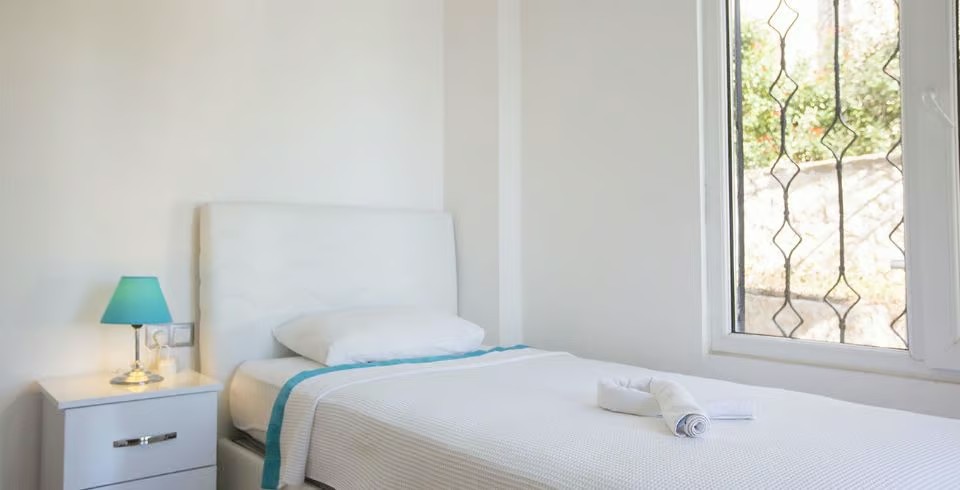 5. Yatak Odası : 2 adet tek kişilik yatak, elbise dolabı, klima, balkon bulunmaktadır. Banyo ve tuvalet ortak kullanımdır.