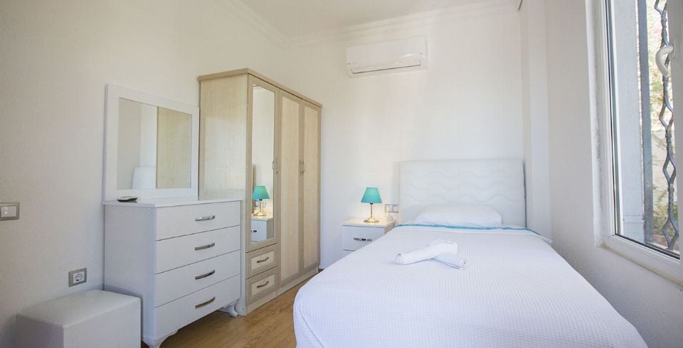 6. Yatak Odası : 1 adet tek kişilik yatak, elbise dolabı, klima bulunmaktadır. Banyo ve tuvalet ortak kullanımdır.