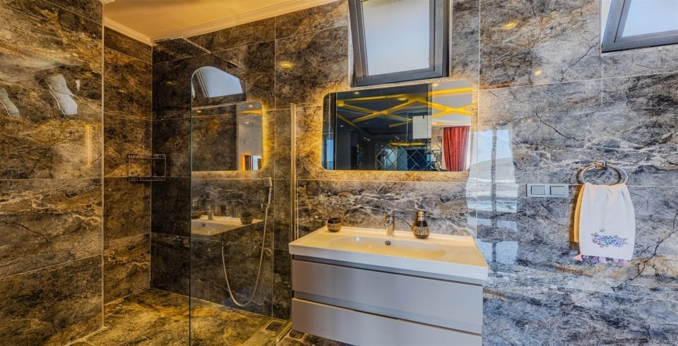 1. Yatak Odası: 1 adet çift kişilik yatak, elbise dolabı, jakuzi, makyaj masası, klima, komodin, makyaj masası, banyo ve lavabo bulunmaktadır.