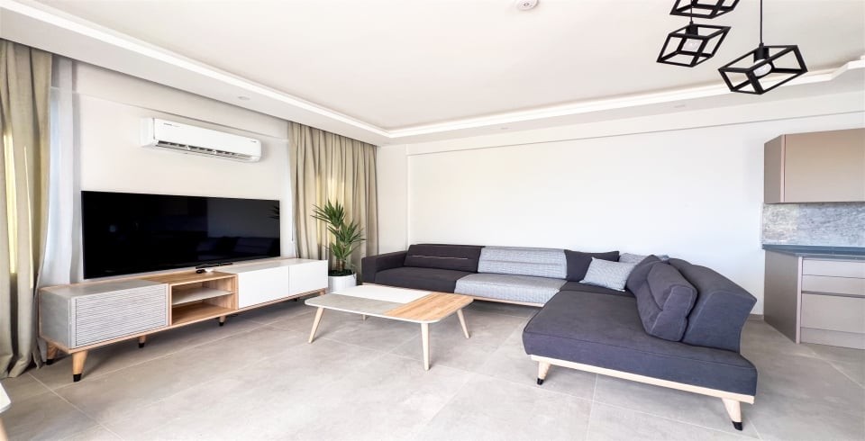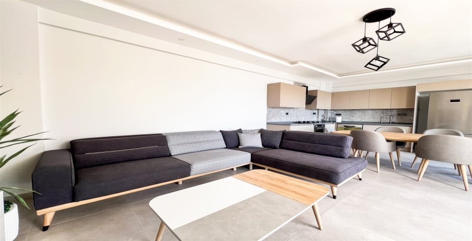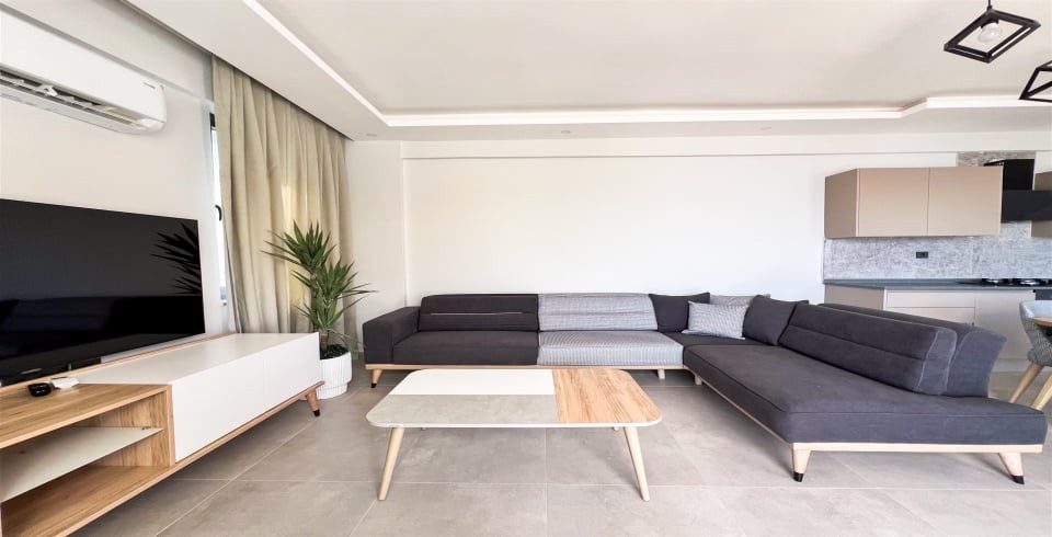 Salon: Özenle döşenmiş salon, modern koltuklar,  yemek masası, LCD TV  ve klima bulunmaktadır.