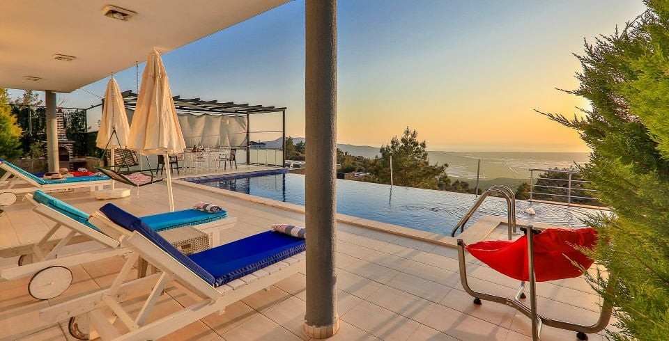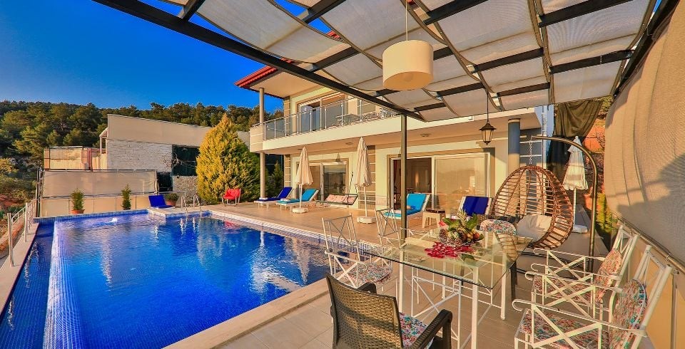 Villa Melis, Kalkan Üzümlü bölgesinde bulunuyor olup 6 kişilik konaklama kapasitesi ile 3 yatak odasına sahiptir. Muhafazakâr villa kategorisinde olan Villa Melis, muhafazakâr tatil yapmak isteyenler için güzel bir tatil fırsatı sunar. Balayı çiftleri ve arkadaş grupları da villamızı tercih edebilir ve tatillerini doyasıyla villamızda çıkartabilir. Beyaz ve sade mimarisi ile tasarlanan villamızda, arkadaşlarınız veya aileniz ile doğa içerisinde harika bir manzara ile mükemmel bir tatil geçirme fırsatını kaçırmayın. Villamızın geniş havuzu ile beraber yanında bulunan şezlonglar ile güneşlenebilir ve bahçede bulunan yemek masası ile manzaraya karşı havuz kenarında harika yemekler yiyebilirsiniz. Doğa içerisinde harika bir manzaraya sahip olan villamız özellikle göz önünde olmadığından dolayı bu özelliği de ön plandadır. Villa içerisinde ihtiyacınız olan eşyalar mevcut olup tatilcilerine çok konforlu bir tatil sunmaktadır. Villa Melis, huzur dolu ortamı ile siz tatil severleri en güzel şekilde ağırlamak için bekliyor.