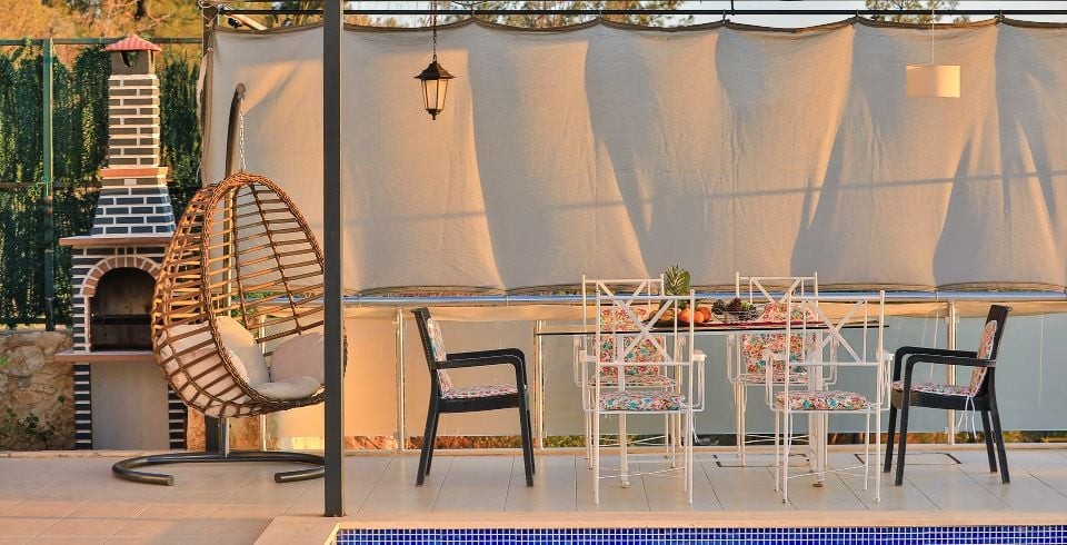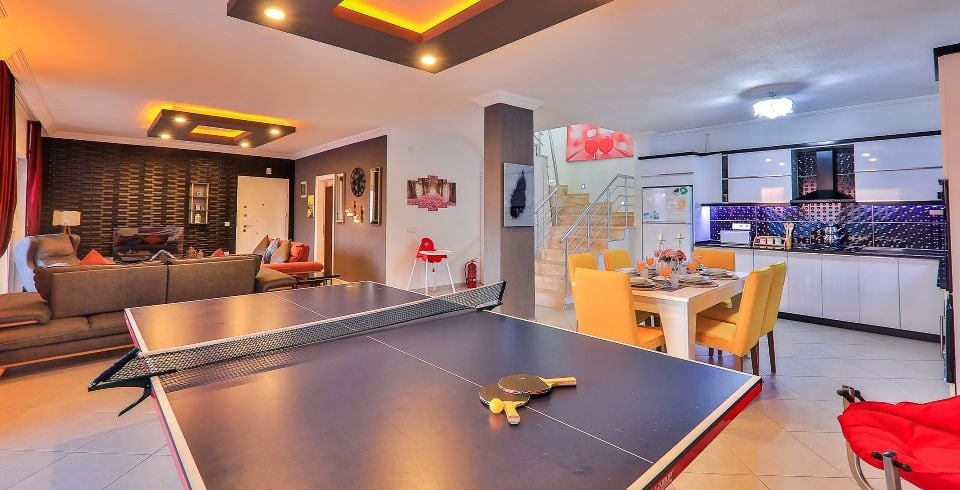 Bahçe : Villamızın bahçesinde özel yüzme havuzu, güneşlenmeniz için 6 adet şezlong, güneşlenme terası, 6 kişilik masa, oturma grubu, güneş şemsiyesi bulunmaktadır.