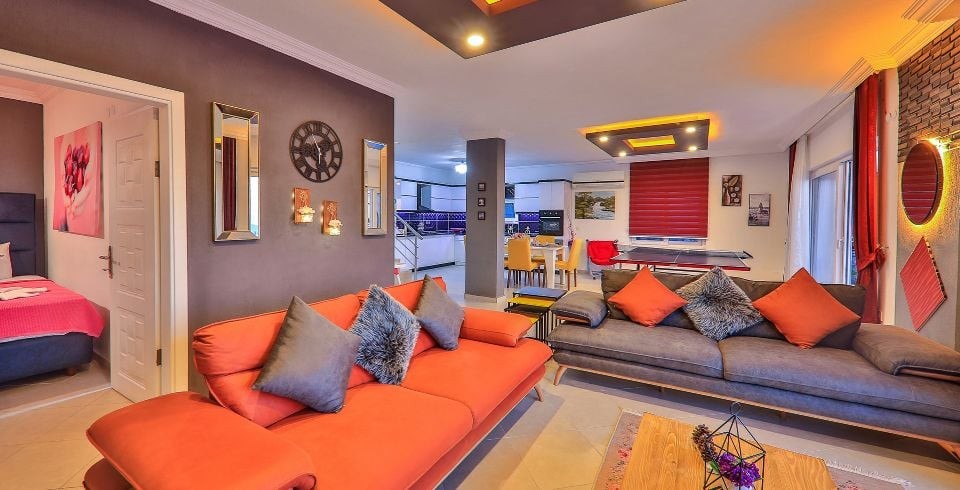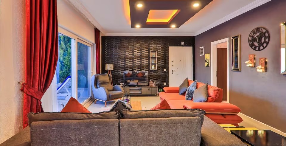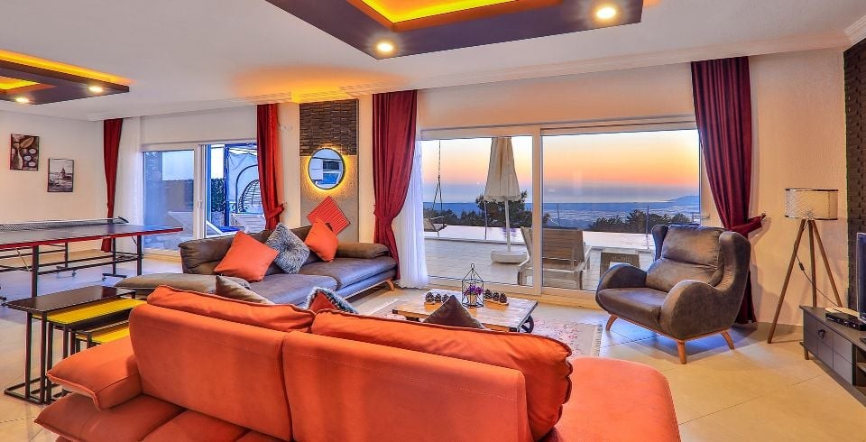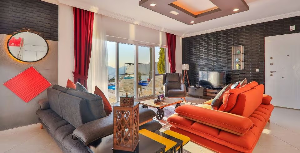 Salon : Villa Melis’in salonunda sizi şık bir oturma grubu ile klima, televizyon, internet, uydu, koltuk, sehpa ile ferah bir salon bekliyor olacaktır. Havuz terasına çıkış yapılmaktadır.