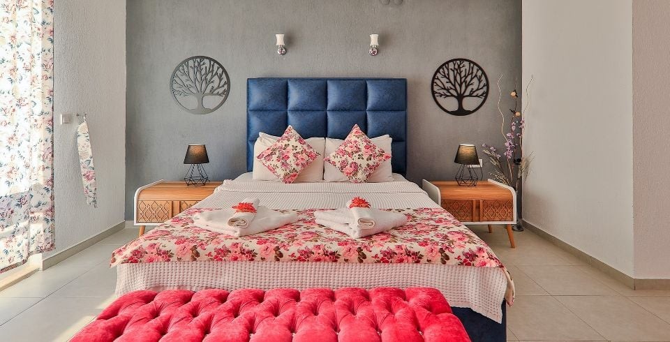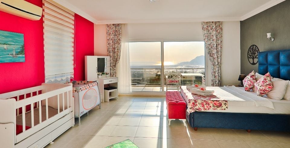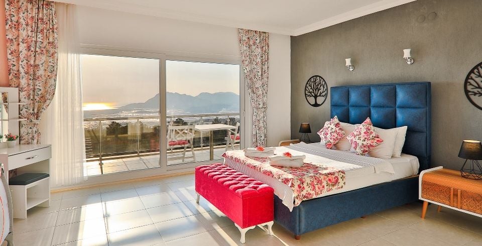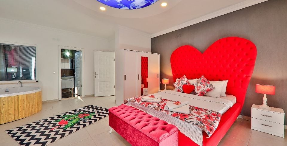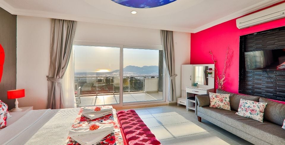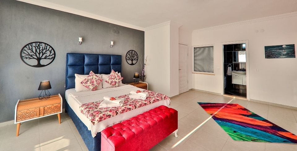 2. Yatak Odası : 1 adet çift kişilik yatak, klima, jakuzi, komodin, elbise dolabı, makyaj masası, banyo ve lavabo bulunmaktadır.
