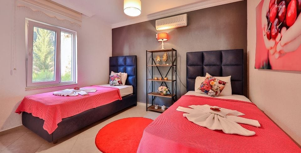 3. Yatak Odası : 2 adet tek kişilik yatak, klima, elbise dolabı, makyaj masası, komodin, banyo ve lavabo bulunmaktadır.