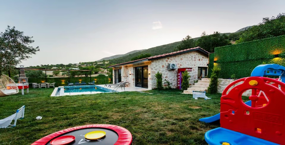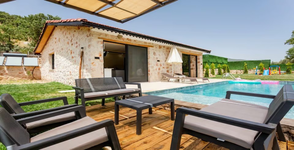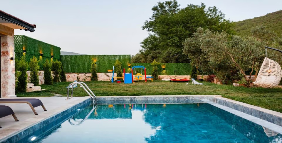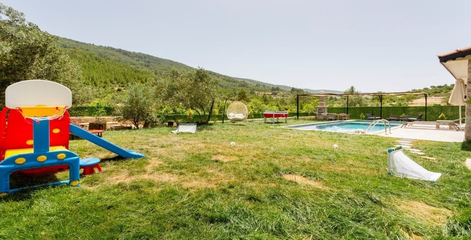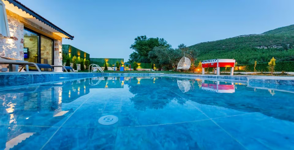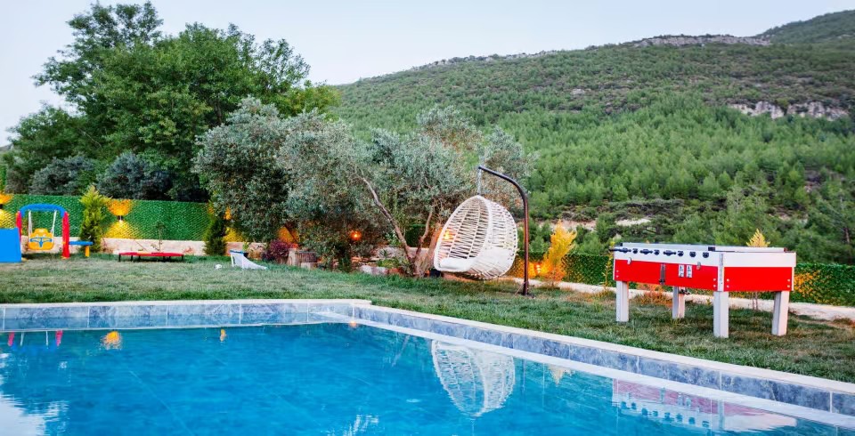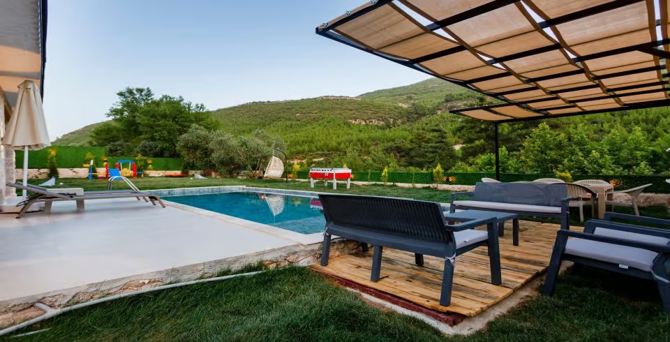 Havuz ve Bahçe : Villamızın havuz terasında şezlong, şemsiye, oturma grubu, yemek masası, salıncak, langırt, barbekü, özel yüzme havuzu bulunmaktadır.