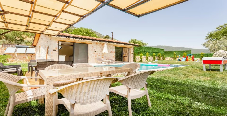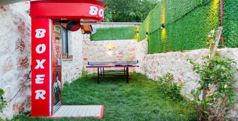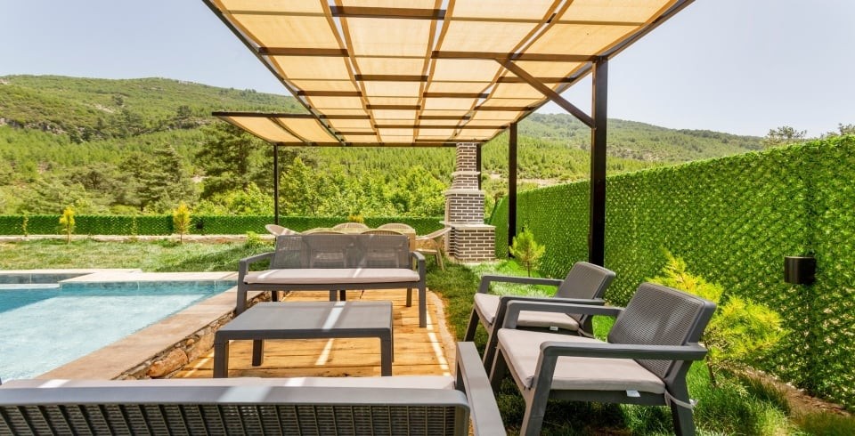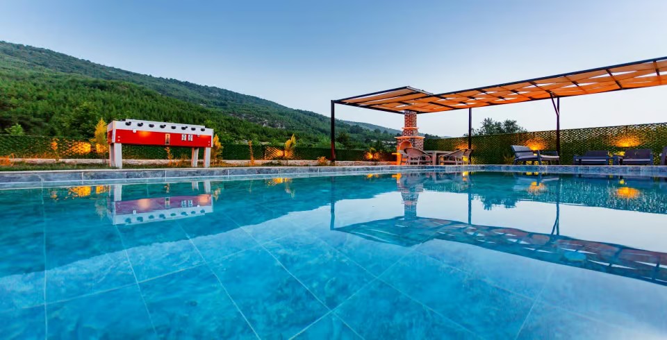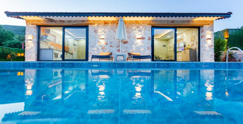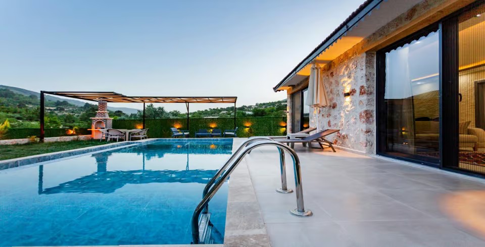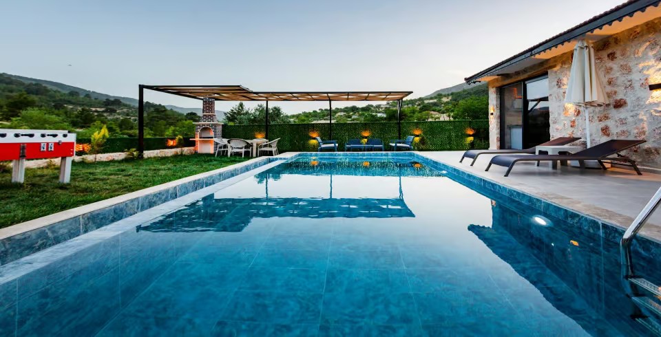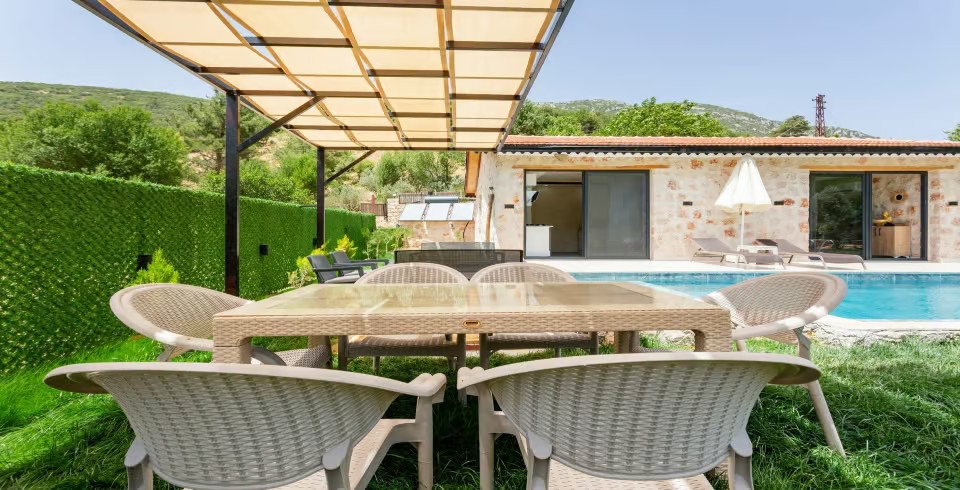Havuz ve Bahçe : Villamızın havuz terasında şezlong, şemsiye, oturma grubu, yemek masası, salıncak, langırt, barbekü, özel yüzme havuzu bulunmaktadır.