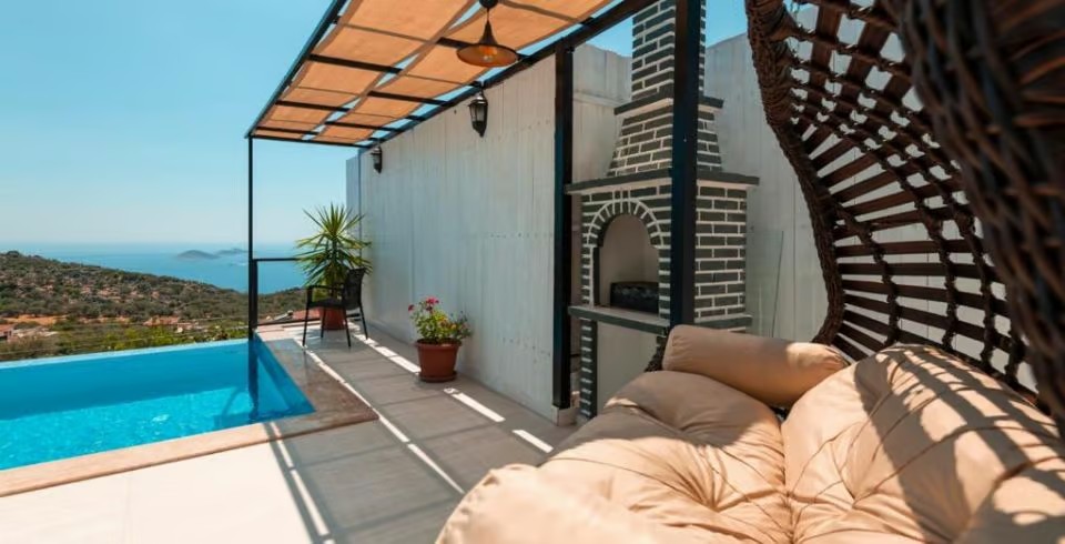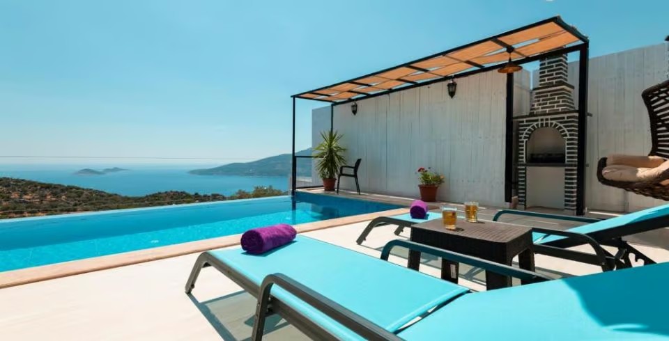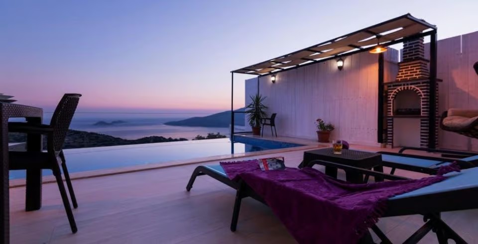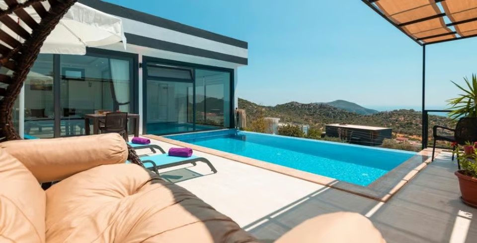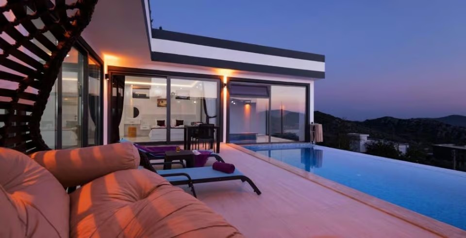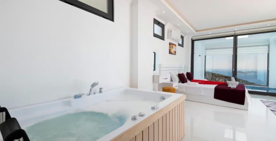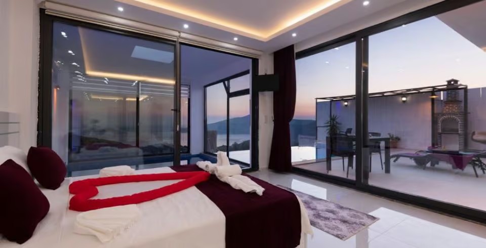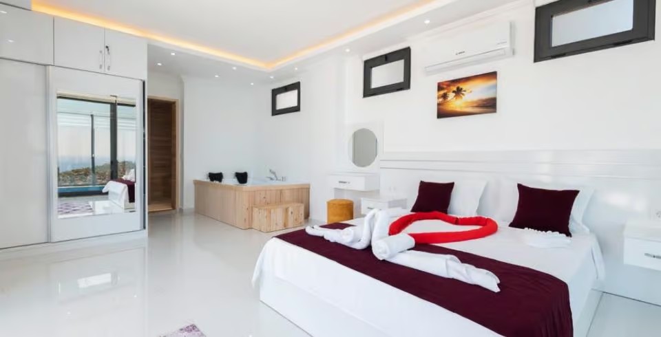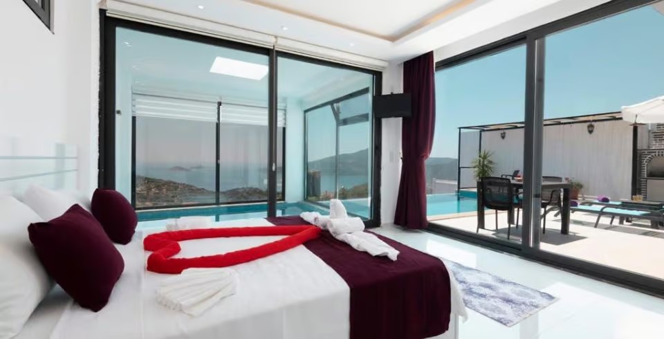 Kiralık yazlık villamız Kalkan Kördere mevkisin de konumlanmıştır. 1 yatak odalı 2 kişilik kapasiteye sahiptir. Balayı çiftlerine özel olarak tasarlanmış olup süit yatak odasında jakuzi bulunmaktadır. Merkezi konumda olup oldukça rahatlıkla tercih edebilirsiniz. Villa Meris yaz kış aktif olarak kapalı ısıtmalı havuzu da mevcuttur. Villamızın özel yüzme havuzu ve havuz terası muhafazakar aileler göre dizayn edilmiştir.