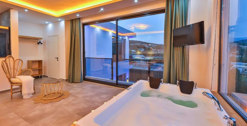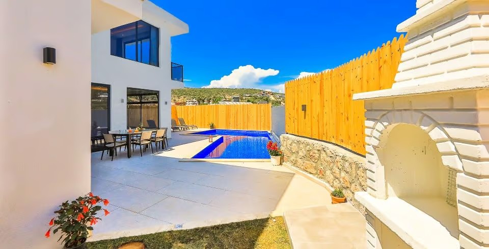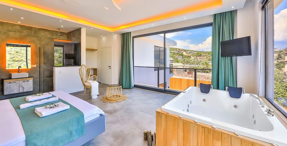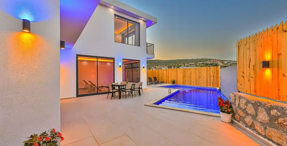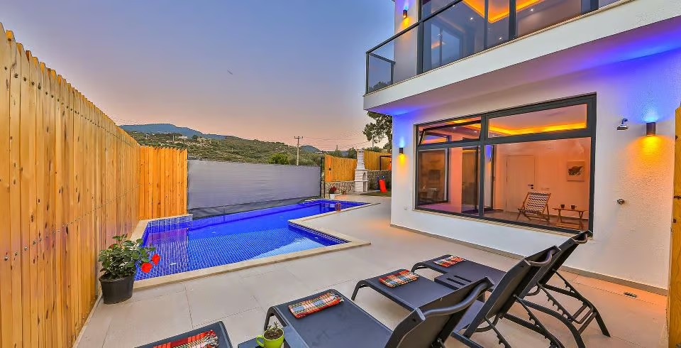 Kalkan Patara mevkisinde bulunan kiralık balayı villası, sessizliğin, huzurun hakim olduğu bir villada tatil isteyen çiftlerimiz için oldukça uygun bir seçenektir. Muhafazakar villalar ve balayı villaları kategorisinde yer alan villamız, 2 yatak odası ile 4  kişilik konaklama kapasitesine sahiptir. Havuzu korunaklı ve bahçesi dışarıdan görünmeyen Villa Metaverse, mahremiyete önem veren çiftlerimiz için huzur dolu bir tatil fırsatı sunuyor. Ayrıca yatak odasında misafirlerimizin rahatlaması için 2 kişilik jakuzi konforu da sağlamaktadır.