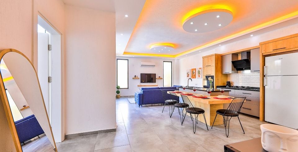 Mutfak : Modern Amerikan mutfak içerisinde 6 kişilik yemek masası , buzdolabı, bulaşık makinası, fırın, ocak, mikrodalga fırın, tost makinası, yemek masası, yemek takımları, çatal ve bıçak takımları, tencere ve tava takımları, bardaklar bulunmaktadır.