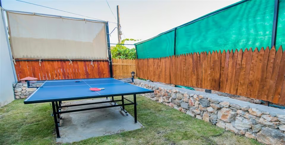 Bahçe : Villamızın bahçesinde özel yüzme havuzu, güneşlenmeniz için 6 adet şezlong, güneşlenme terası, 4 kişilik masa, oturma grubu,Masa Tenisi, mangal keyfiniz için barbekü, güneş şemsiyesi ve salıncak bulunmaktadır.