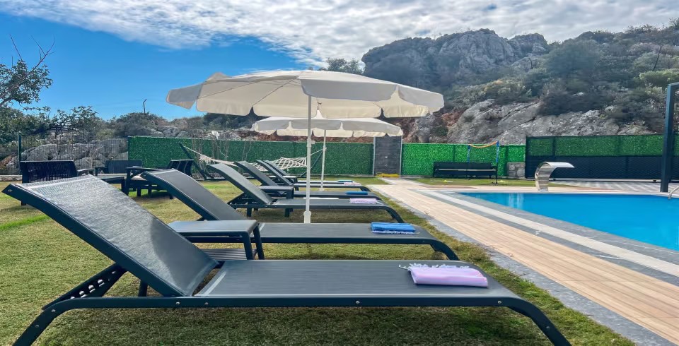 Havuz ve Bahçe: Özel yüzme havuzu,şezlong,şemsiye,salıncak,bahçe mobilyaları,masa tenisi,çocuk oyun alanı,hamak ve barbekü ve bulunmaktadır.