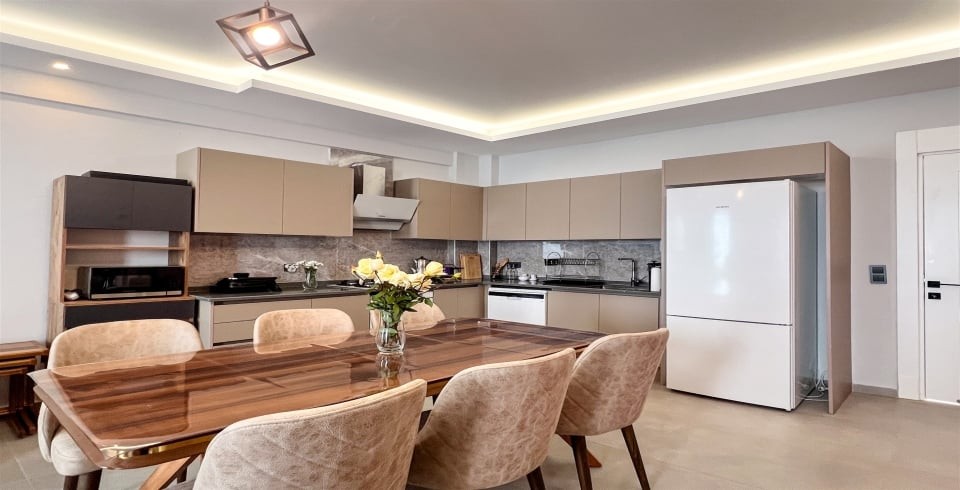 Mutfak: Açık planlı mutfak, 6 kişiye yetecek kadar mutfak malzemeleri, buzdolabı, fırın, ocak, mikrodalga fırın, bulaşık makinesi, çamaşır makinesi, tost makinesi, kettle ve çaydanlık bulunmaktadır..