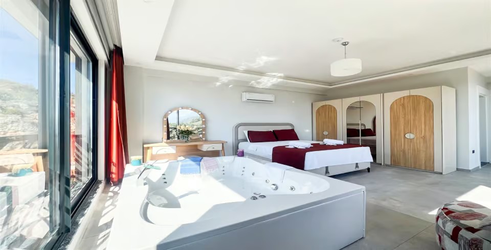 Fethiye’nin tarihi ve doğal güzellikleriyle ünlü Kayaköy bölgesinde yer alan Villa Milena, deniz ve doğa manzarası, geniş bahçesi ve konforlu detaylarıyla keyifli bir tatil imkânı sunuyor. 3 yatak odası ve 6 kişilik kapasitesi, aileler ve arkadaş grupları için ideal bir konaklama sağlarken, iki adet jakuzi ile tatilinize ekstra rahatlık katıyor.