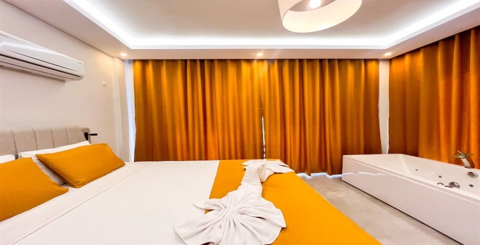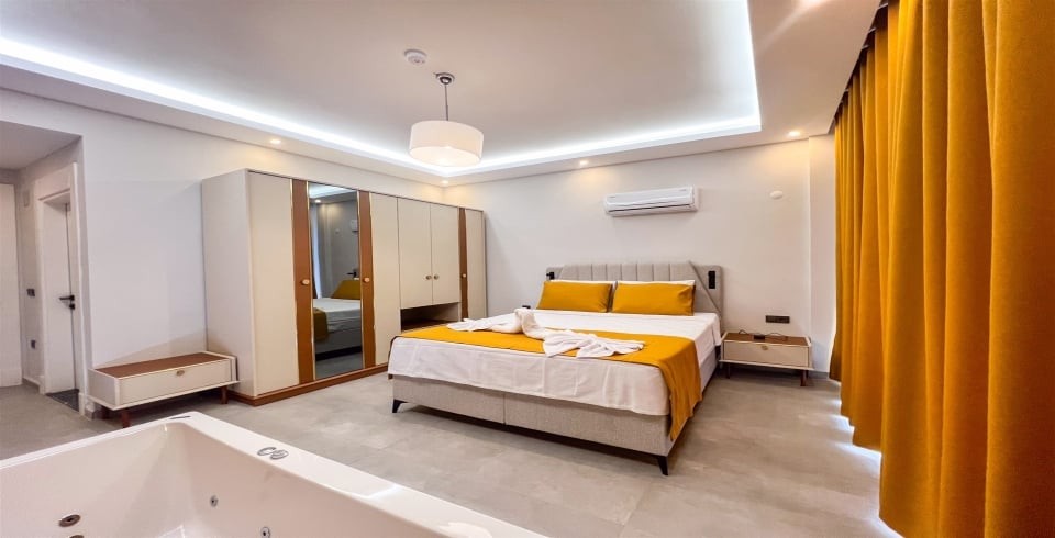1.Yatak Odası: Çift kişilik yatak, jakuzi, klima,elbise dolabı, makyaj masası,tuvalet ve banyo bulunmaktadır.
