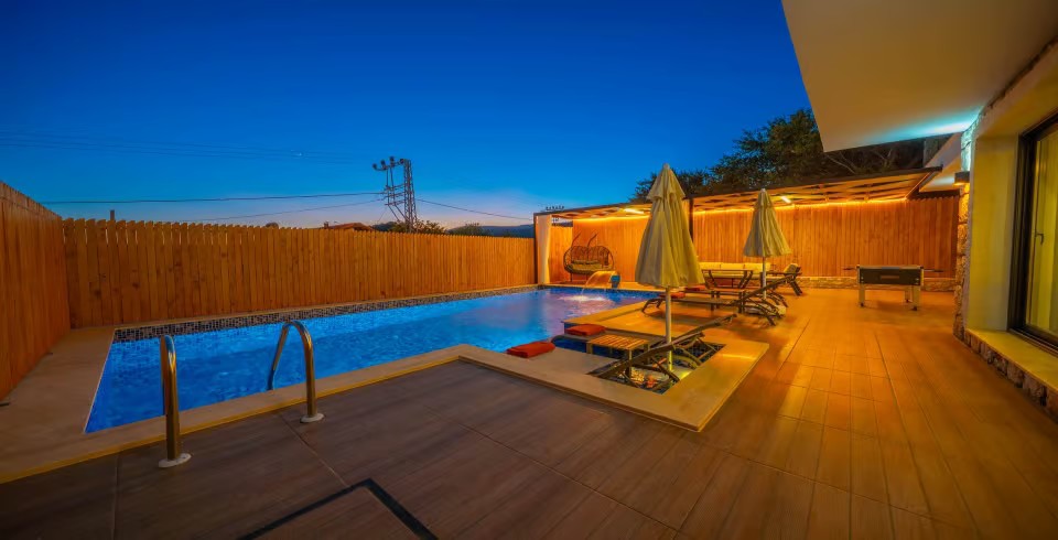 Havuz ve Bahçe: Özel bahçe, özel yüzme havuzu, güneşlenme alanı, şezlong, şemsiye, oturma grubu, yemek masası, barbekü bulunmaktadır.