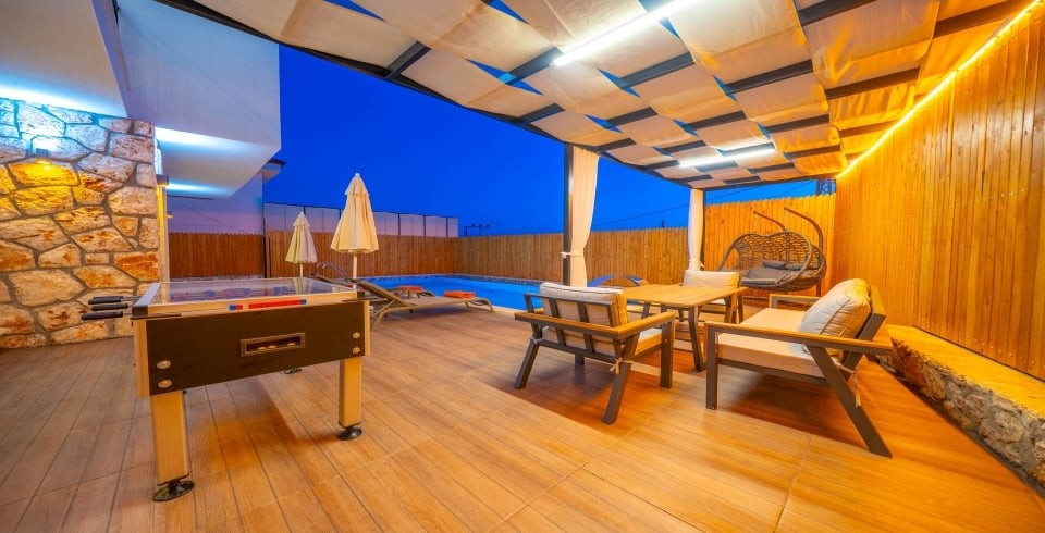 Villanın geniş terası ve oturma alanı keyifli vakit geçirmenizi sağlarken, barbekü imkânı da akşam yemeklerine ayrı bir lezzet katar. Lokasyon olarak market ve restoranlara yaklaşık 1 km, Kaş merkezine ve plajlara ise 6–7 km mesafededir. Sessizlik içinde dinlenmek isteyenler için ideal bir atmosfer sunan Villa Mimira 2, aynı zamanda doğaya yakınlığı ile unutulmaz bir tatil deneyimi yaşatır.
