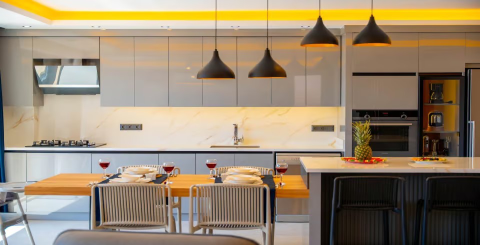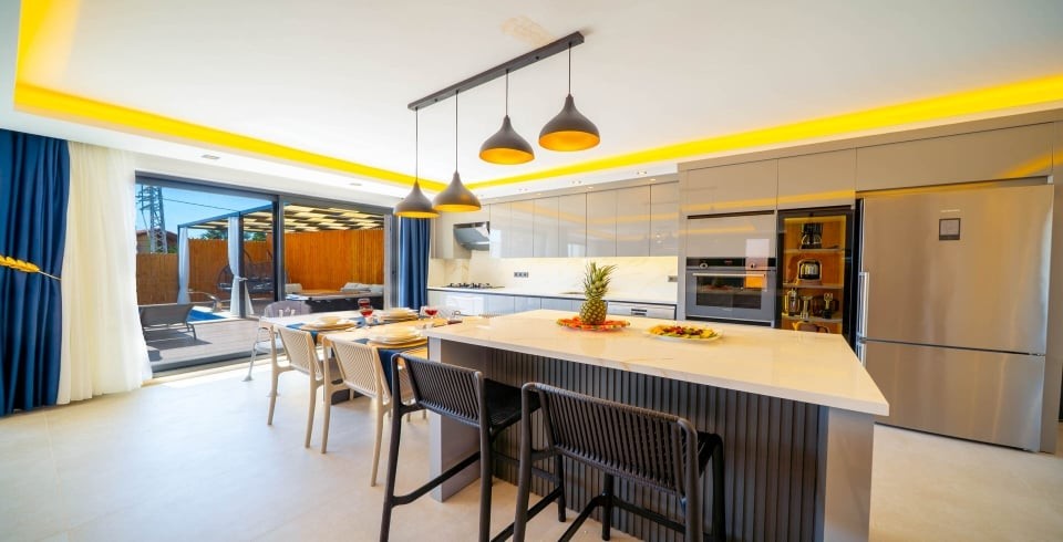 Mutfak : Ferah ve şık dizayn edilmiş Amerikan Mutfak , Buzdolabı , Bulaşık Makinesi , Çamaşır Makinesi , Fırın , Ocak , Elektrikli Su Isıtıcısı , Tost Makinesi , Tava Tencere vb. Mutfak Ekipmanları bulunmaktadır.
