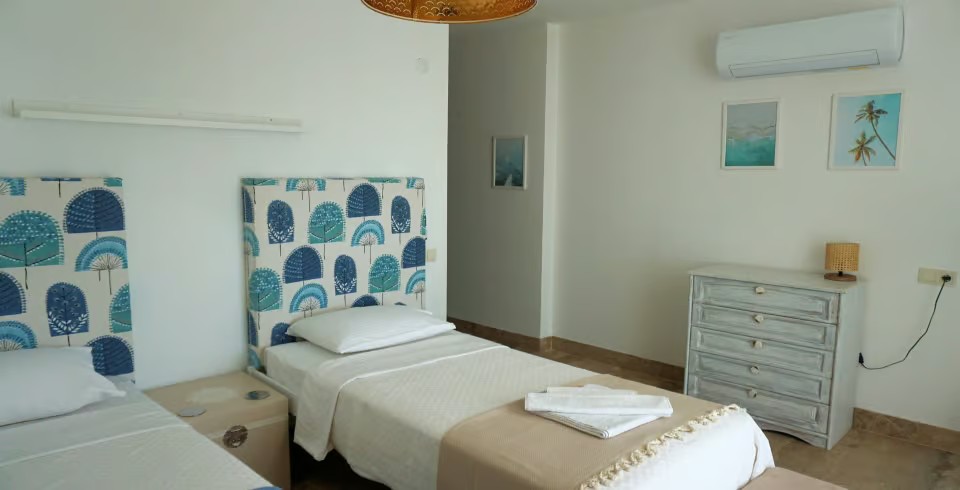 4.Yatak Odası: 2 adet tek kişilik yatak, komodin, klima, elbise dolabı, TV, makyaj masası, banyo ve lavabo bulunmaktadır.