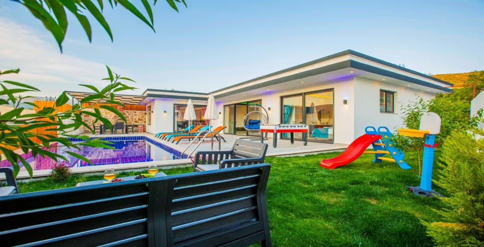 Havuz ve Bahçe: Havuz ve bahçesi korunaklı olup dışarıdan gözükmemektedir. Özel yüzme havuzu, şezlong, şemsiye, oyun parkı, salıncak, hamak, yemek masası ve barbekü bulunmaktadır.