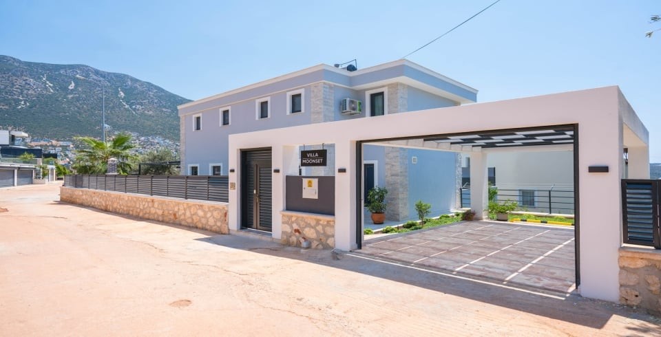 Villa Moonset, Kalkan’ın Ortaalan bölgesinde, panoramik deniz ve doğa manzarasına sahip lüks bir tatil villasıdır. Toplam 3 yatak odası ve 3 en-suite banyosu bulunan villa, 6 kişilik kapasitesiyle aileler ve arkadaş grupları için idealdir. Modern tasarımlı geniş salon, tam donanımlı mutfak ve konforlu yaşam alanlarıyla öne çıkar. İç mekânda kapalı yüzme havuzu, sauna ve oyun odası bulunurken; dış mekânda deniz manzaralı açık havuz, şezlonglar, barbekü alanı ve geniş teras yer alır.