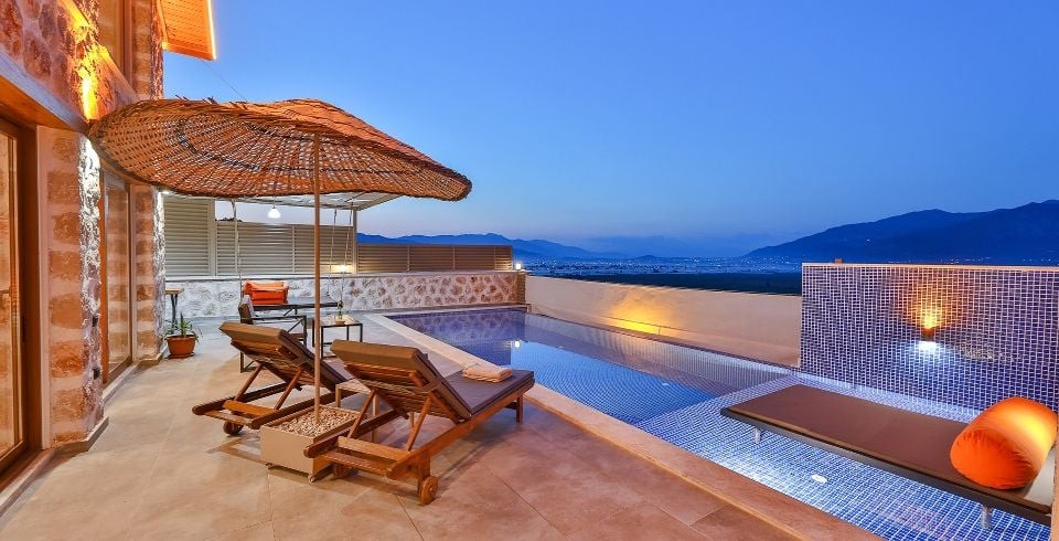 Villamız Kalkan Yeşilköy bölgesinde yer almaktadır. 1 yatak odasına sahip tatil villamız 2 kişilik konaklama kapasitesine sahiptir. Doğa içinde bir konuma sahip olan tatil villamızın havuz alanı sizlere keyifli bir tatil ortamı sunmaktadır. Balayı çiftleri için ideal bir seçenek olan muhafazakar hassasiyete sahip misafirlerimiz içinde uygun bir tatil ortamı sunmaktadır.