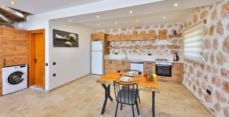 Mutfak: Villamızın mutfağında buzdolabı bulaşık makinası, çamaşır makinası, 4'lü ocak, ketıl, mikro dalga fırın, filtre kahve makinası yemek takımı bulunmaktadır.