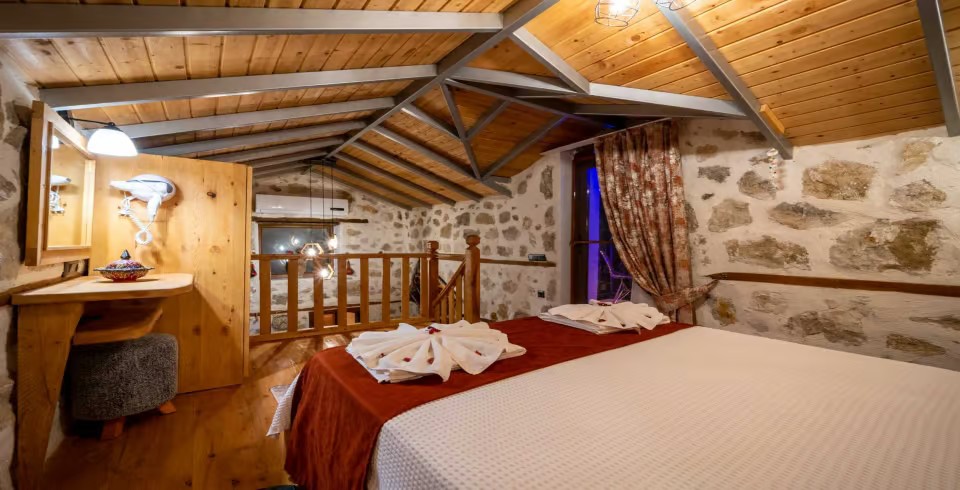 Villa Mountain House, Kalkan İkizce Köyü’nde muhteşem bir doğa içinde bulunmaktadır. Balayı çiftleri ya da romantik bir tatile çıkmak isteyen çiftler için özel olarak hazırlanmıştır. Geniş bir bahçesi ve ferah kullanım alanları bulunmaktadır. Taş mimariye sahip villamızın ahşap detayları vardır. Havuzu ve terası dışarıdan görülmeyen villamız gözlerden uzakta tatil yapmak isteyen çiftlerimiz ve muhafazakar balayı çiftlerimiz için oldukça uygun bir seçenektir.