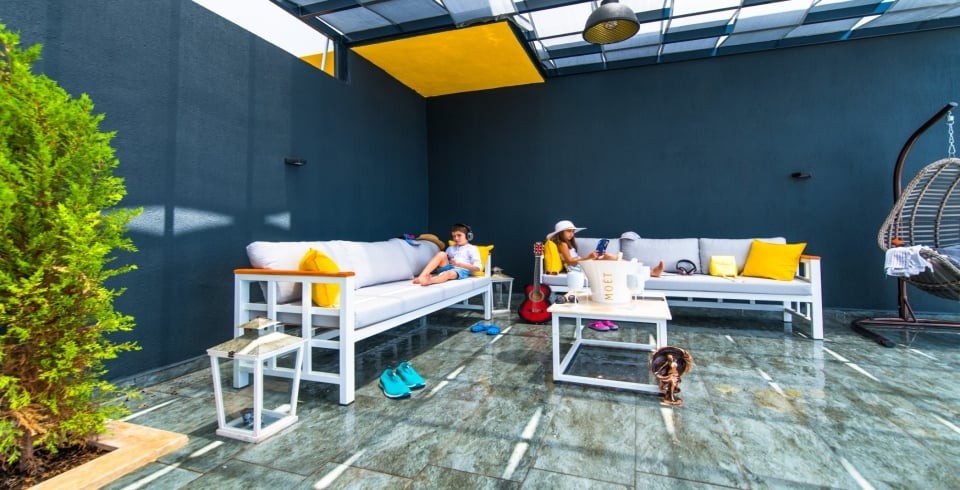 Havuz Ve Bahçe : Geniş havuz terasında; Özel havuz, 6 adet şezlong, şemsiye, bahçe mobilyası, barbekü ve salıncak bulunmaktadır.