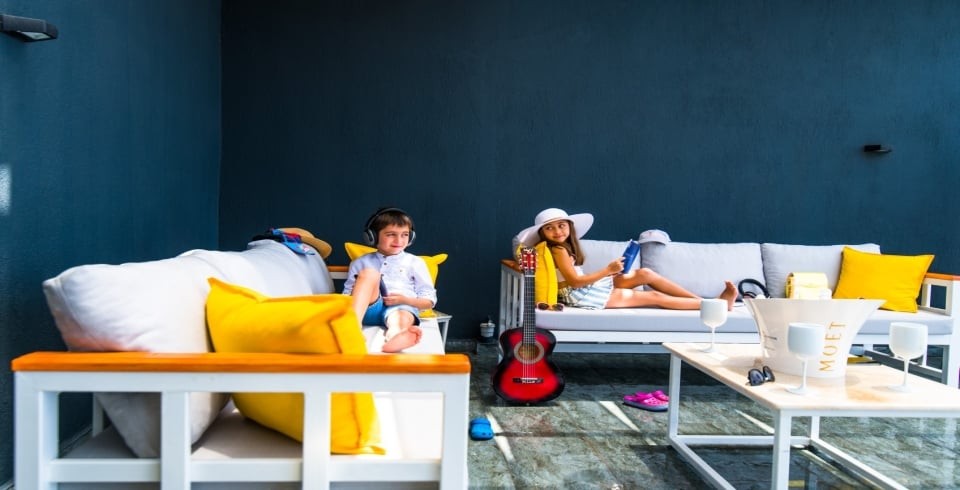 Villanın jakuzisi, deniz manzarası eşliğinde dinlenmek isteyen misafirler için keyifli bir alan sunarken, çocuk havuzu küçük misafirler için güvenli bir eğlence ortamı sağlar. Manzarası, konforu ve zarif yapısıyla ön plana çıkan villa, aynı zamanda balayı çiftleri için de romantik ve unutulmaz bir ortam sunar.