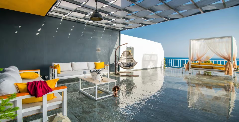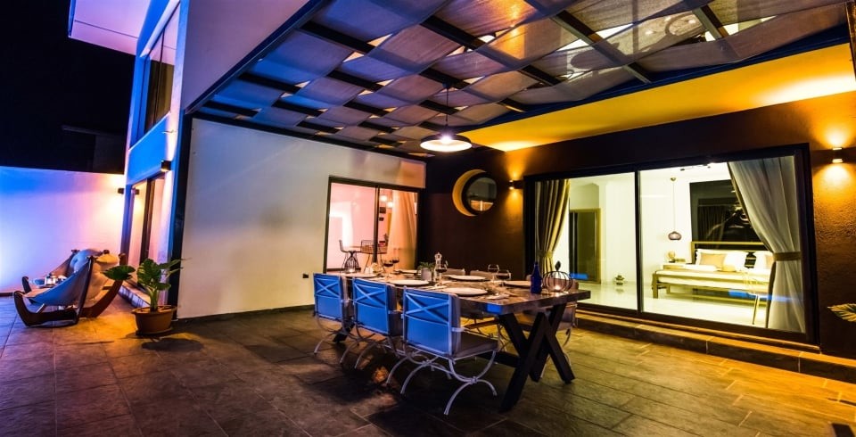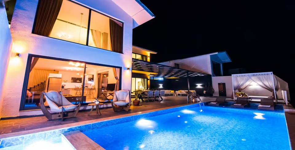 Villanın jakuzisi, deniz manzarası eşliğinde dinlenmek isteyen misafirler için keyifli bir alan sunarken, çocuk havuzu küçük misafirler için güvenli bir eğlence ortamı sağlar. Manzarası, konforu ve zarif yapısıyla ön plana çıkan villa, aynı zamanda balayı çiftleri için de romantik ve unutulmaz bir ortam sunar.