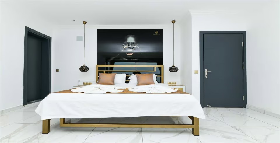 1.Yatak Odası: Süit yatak odasında; Çift kişilik yatak, makyaj masası, komodin, klima, elbise dolabı, banyo ve jakuzi bulunmaktadır.