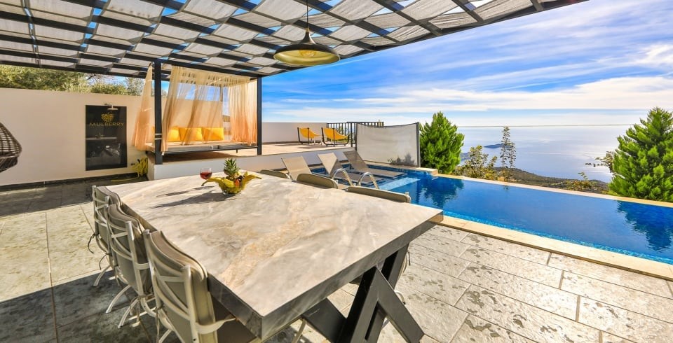 Villa Mulberry Collection 7, Antalya'nın Kaş Kalkan mevkiinde konumlanmış, muazzam Akdeniz ve Adalar manzarasına sahip, Kiralık Lüks Tatil Villasıdır. 6 kişilik kapasiteye sahip olan villamızın 3 yatak odası ve banyosu mevcuttur. Her odası Deniz Manzarasına sahip olup, son derece lüks ve şık bir mimariye sahiptir. Bütün mobilyalar birinci sıfır kalite olmaksızın, sizler için konforlu bir Villa Tatili fırsatı sunmaktadır. Geniş ailelere ve kalabalık arkadaş gruplarına göre oldukça ideal olan villamızda, manzaraya karşı yemeklerinizi yiyebilir, günbatımının keyfini çıkarabilirsiniz. Muhafazakar misafirlerimiz için de düşünülmüş olan villamız sizler için Korunaklı hale getirilmiştir. Ayrıcalıklı bir tatil için Tatil Villasi'ndan yerinizi ayırtabilirsiniz.