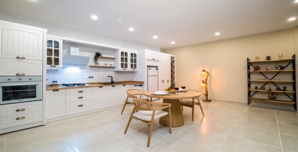 Mutfak : Villamızın mutfağında buzdolabı bulaşık makinası, çamaşır makınası,4'lü ocak, ketıl, 4 kişilik yemek takımı bulunmaktadır.