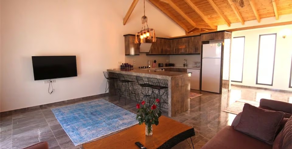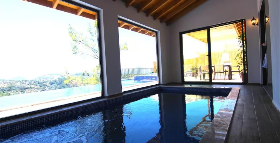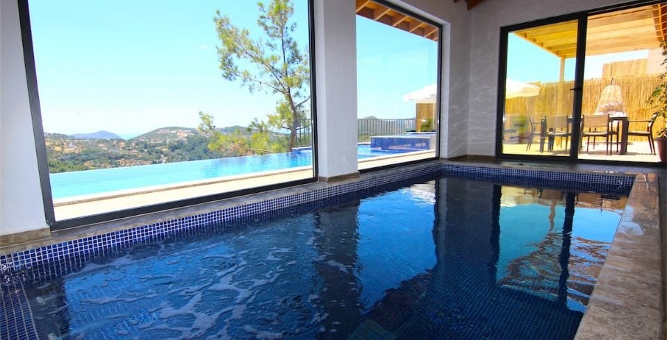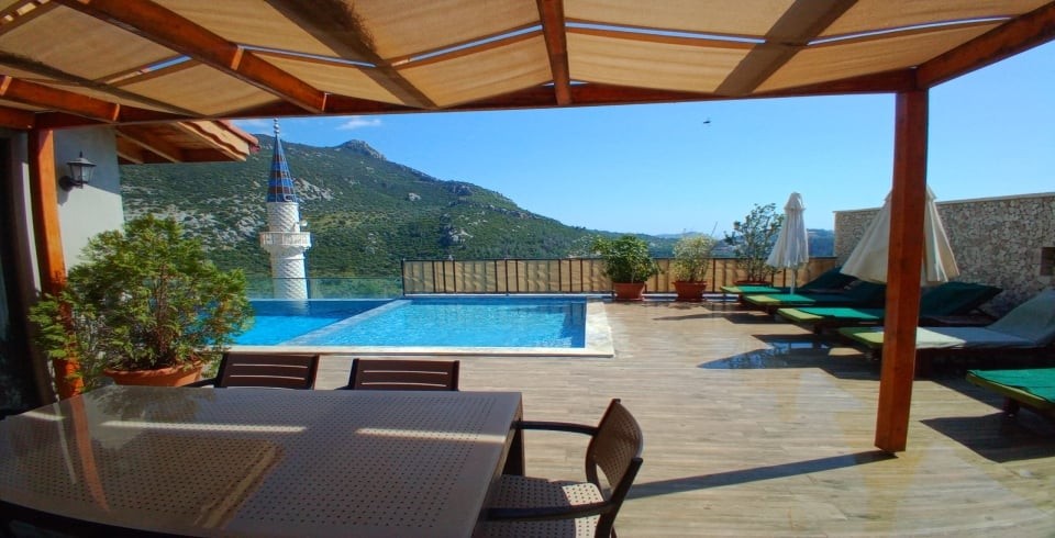 Villa Myra, Kalkan İslamlar bölgesinde bulunuyor olup 6 kişilik kapasitesi ile 3 adet yatak odası ve 3 banyo bulunmaktadır. Harika bir tasarıma sahip villamız aynı zamanda muhafazakâr villa arasındadır. Bu sayede muhafazakâr aileler için özel bir tatil imkânı sunar. Deniz ve doğa manzarası ile beraber geniş bir havuzu bulunmaktadır ve villa içerisinde de ısıtmalı havuz bulunmaktadır. Bu sayede yaz kış tatilinizi yapabilirsiniz. Villa içerisinde ihtiyacınız olan her şey bulunuyor olup jakuzide bulunmaktadır. İç mimarisi ve konforlu eşyalarla beraber lüks villamız kiralık villa olarak hizmetinize sunulmuştur. Villamız Kalkan merkeze ve plaja 5 km mesafede bulunuyor olup tatil sırasında gezebilir aileniz ile plaja gidebilirsiniz. Aynı zamanda minik müşteriler için çocuk havuzu bulunmaktadır. Villa Myra, misafirlerini yaz kış ağırlamak için bekliyor.