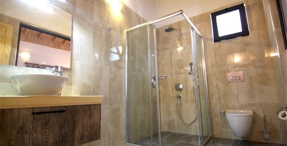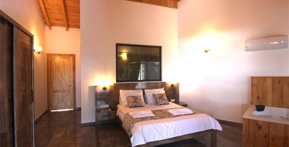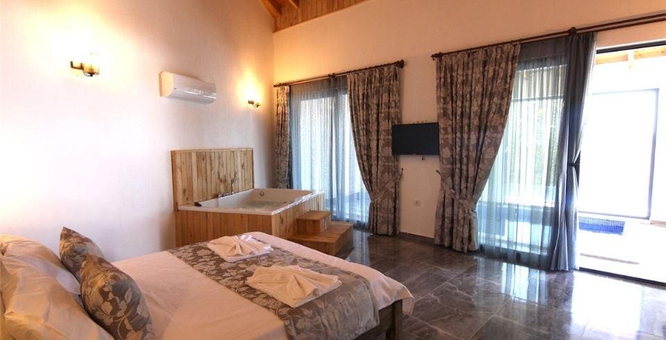2. Yatak Odası : 1 adet çift kişilik yatak, klima, komodin, elbise dolabı, makyaj masası, mini mutfak, oturma grubu, TV, banyo ve lavabo bulunmaktadır. ( Villanın giriş katında ayrı olarak yer almaktadır. )