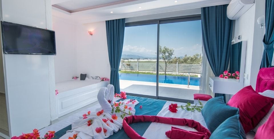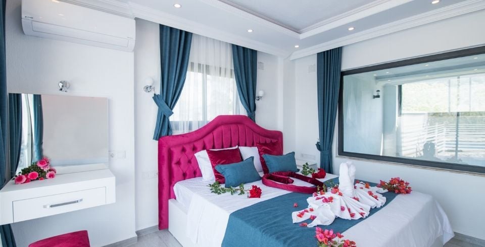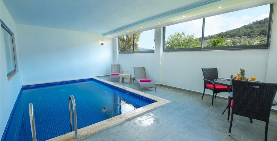 Kalkan Gelemiş köyünde bulunan 2 yatak odalı 4 kişilik muhafazakar kiralık villamız 2019 yılında tamamlanmış olup siz değerli misafirlerimiz ağırlamaktadır. Villamızda ısıtma havuz ve jakuzi bulunmakta olup doğa ve ova gölü manzarasına sahiptir. Villamızın bulunduğu konum itibari ile denize ve merkeze ulaşım kendi aracınız ile veya dolmuş ile sağlanmakta olup gayet kolaydır. Villamız Dünyaca ünlü Patara plajına yakın bir mesafe bulunmakta olup aracınız ile 10 dakika sürmektedir. Villamızın içerisinde kış aylarına uygun olarak ısıtma havuzu bulunmaktadır. Villamızın havuz ve havuz terası korunaklı olup muhafazakar ailelerimiz ve balayı çiftlerimize son derece uygundur.