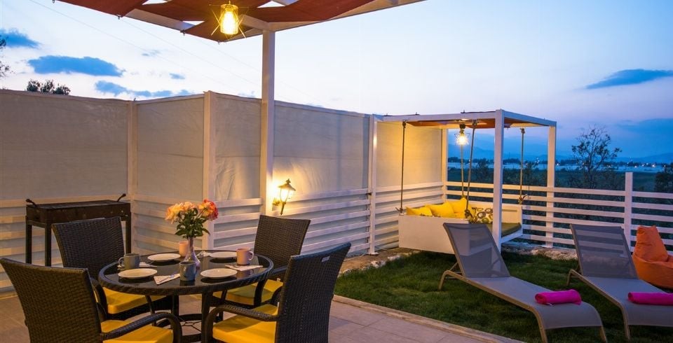 Bahçe : Bahçe içerisinde özel yüzme havuzu, 4 adet şezlong, 4 kişilik yemek masası, barbekü, güneş şemsiyesi bulunmaktadır