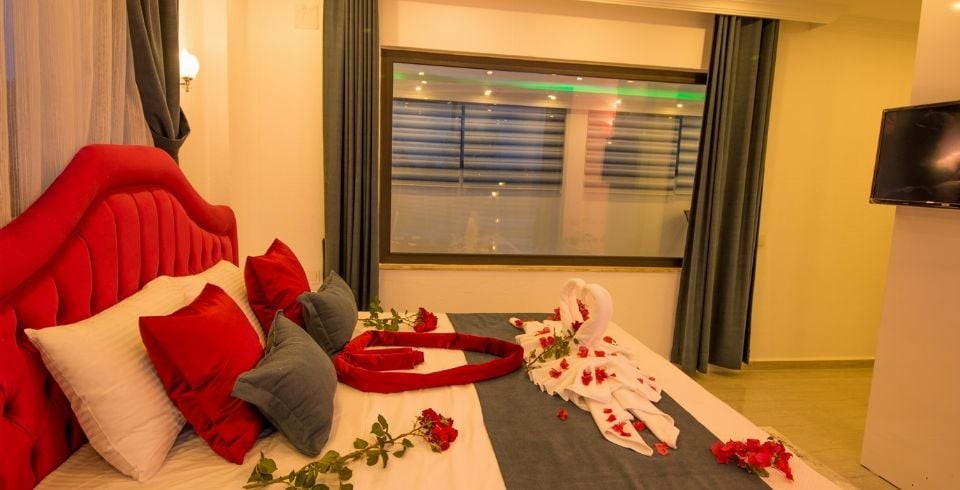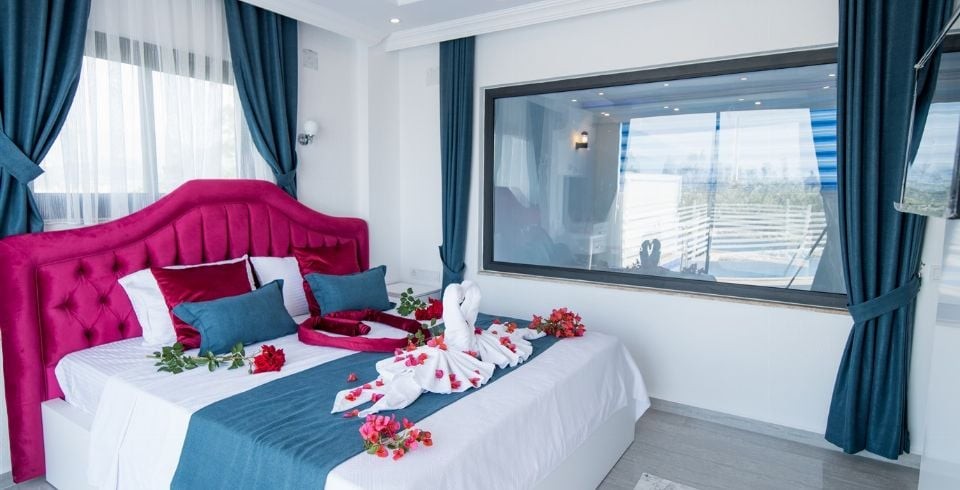 1. Yatak Odası : Çift kişilik yatak, klima, komodin, elbise dolabı, makyaj masası, banyo ve lavabo, jakuzi bulunmaktadır.