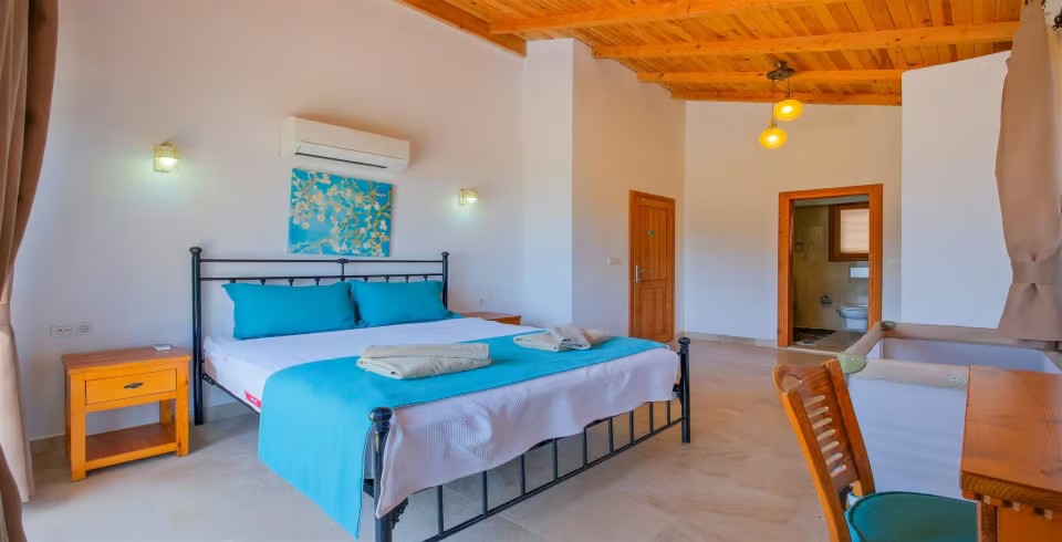 1: Yatak Odası: Çift kişilik yatak ,klima, komodin ,elbise dolabı, makyaj masası ,banyo ve tuvalet bulunmaktadır.