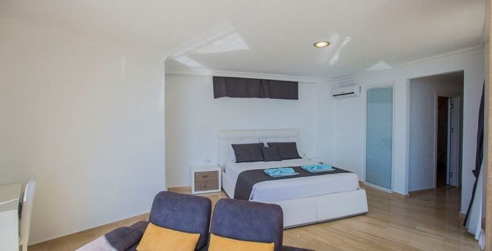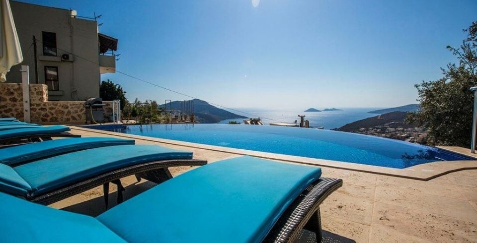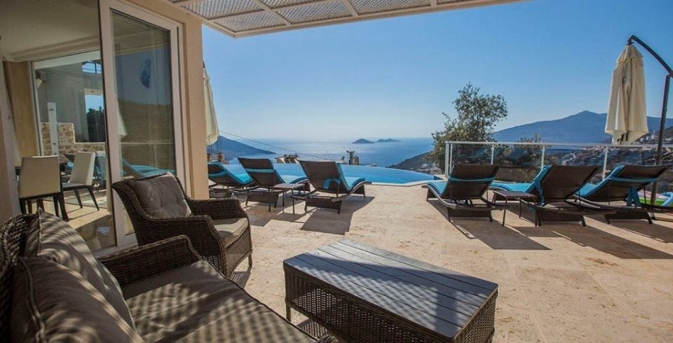 Kalkan Kızıltaş mevkiinde geniş aileler ve kalabalık arkadaş grupları için son derece uygun olan kiralık yazlık villamız Full deniz manzaralı ve şehir merkezine 3-5 dakika yürüme mesafesindedir. Tüm yatak odalarından deniz manzarasına hakim olan villamızda oyun salonu ve şömineli salonunda bulunmaktadır. Villamızın 1 araç için kapalı otoparkı ve kapalı oyun salonu bulunmaktadır. Oyun salonunda bilardo, masa tenisi ve spor aletleri bulunmaktadır. Toplam 7 adet yatak odası bulunmaktadır.