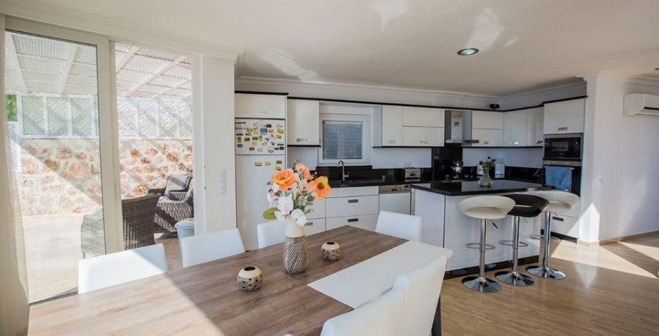 Mutfak: Amerikan mutfak, buzdolabı, bulaşık makinası, çamaşır makinası, kettle, su sebili, 4'lü ankastre ocak, fırın, mikro dalga, bar tezgah, yemek masası ve tüm mutfak araç gereçleri bulunmaktadır.