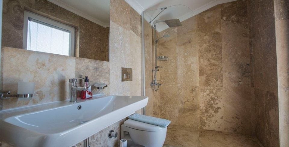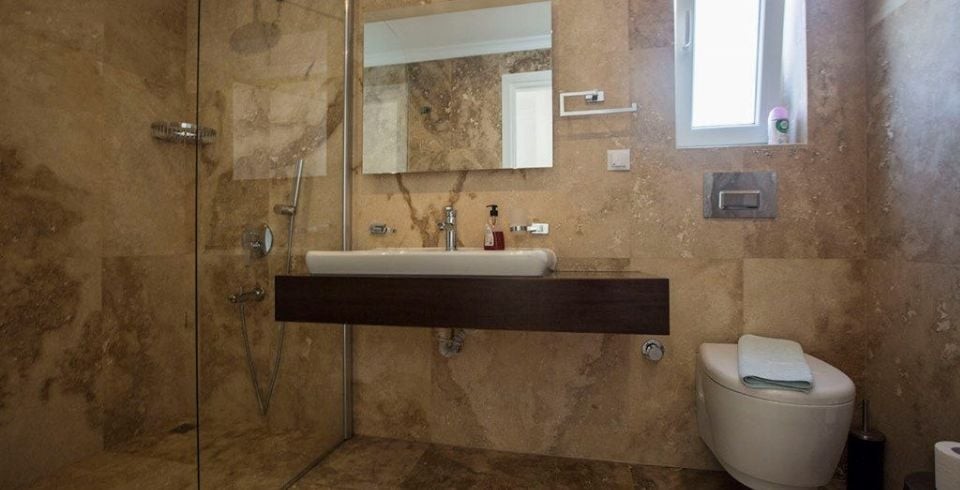 Salon: Villamızın geniş ve muhteşem dizayn edilmiş salonunda oturma grubu, klima, TV, uydu, internet, şömine ve WC bulunmaktadır.