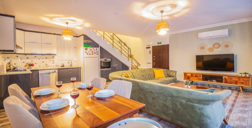 Villa Netya, Üzümlü bölgesinde yer alan özel bir kaçış noktasıdır. Dört kişiye kadar konaklama kapasitesiyle, yeşillikler içinde saklı bir cennet sunar. Doğanın sunduğu bu eşsiz atmosfer, muhafazakar misafirlerimiz için tasarlanmış özel alanlarıyla gizliliği ve huzuru ön planda tutar. Villa Netya, konforlu ve modern iç tasarımıyla dikkat çeker. Geniş bir yaşam alanına sahip olan villada 2 yatak odası, yemek masası, oturma alanı ve tam donanımlı mutfak bulunur. Villada ayrıca özel bir bahçe, özel yüzme havuzu ve teras alanı da mevcuttur. Tüm bu olanaklar sayesinde konuklarımız kendilerini evlerinde gibi hissederler.