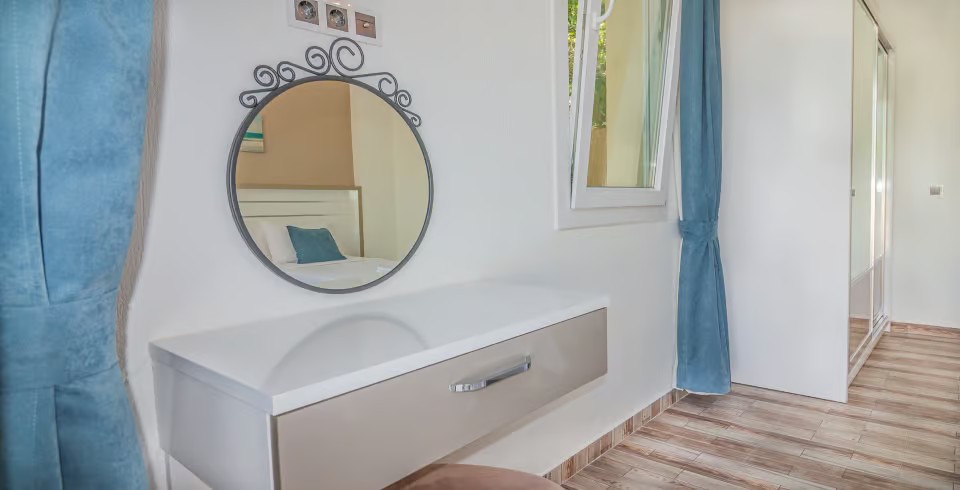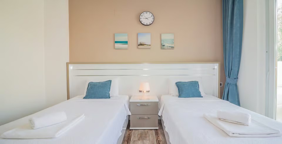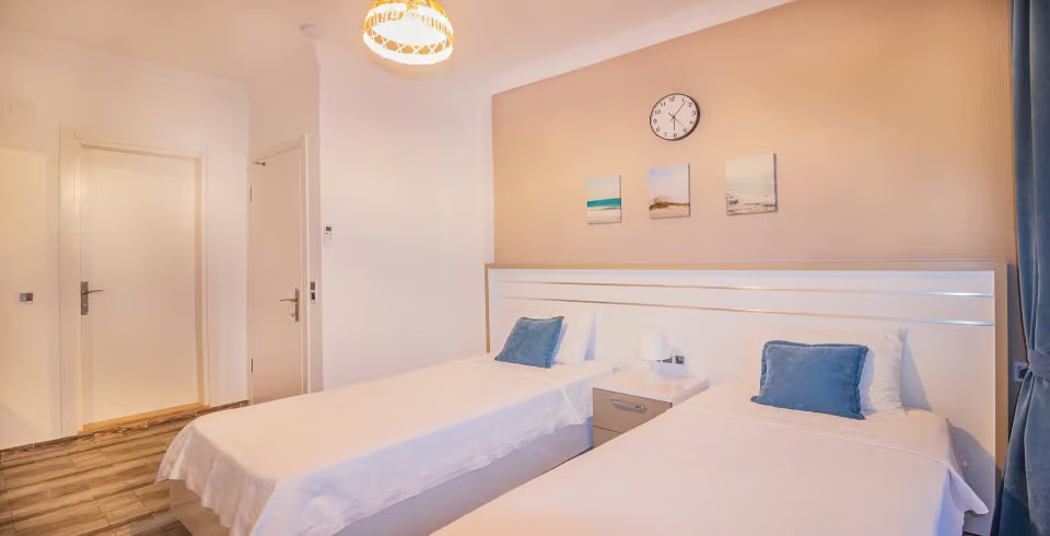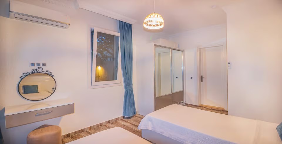 2. Yatak Odası: 2 adet tek kişilik, klima, TV komodin, elbise dolabı, makyaj masası banyo ve tuvalet bulunmaktadır.