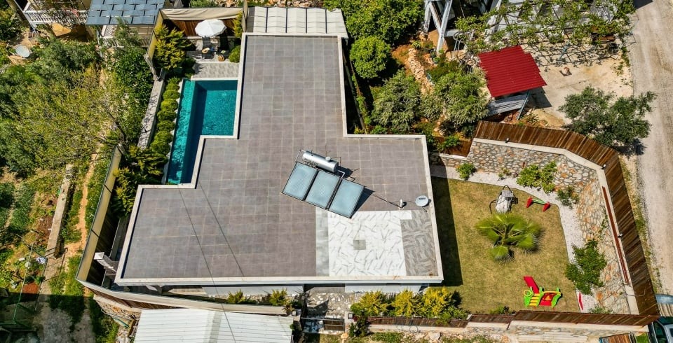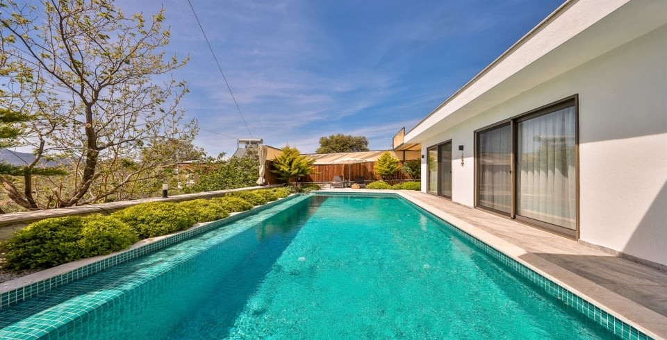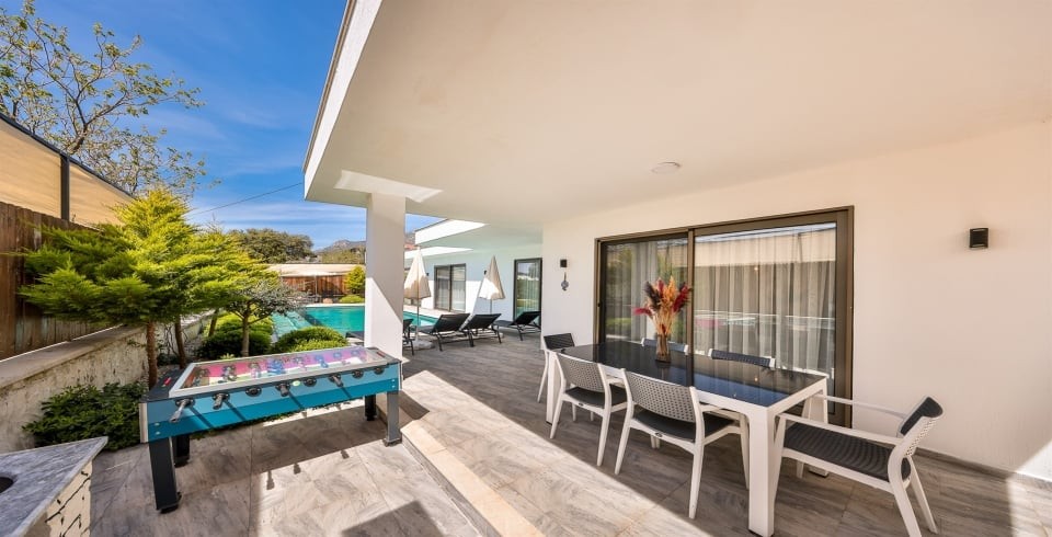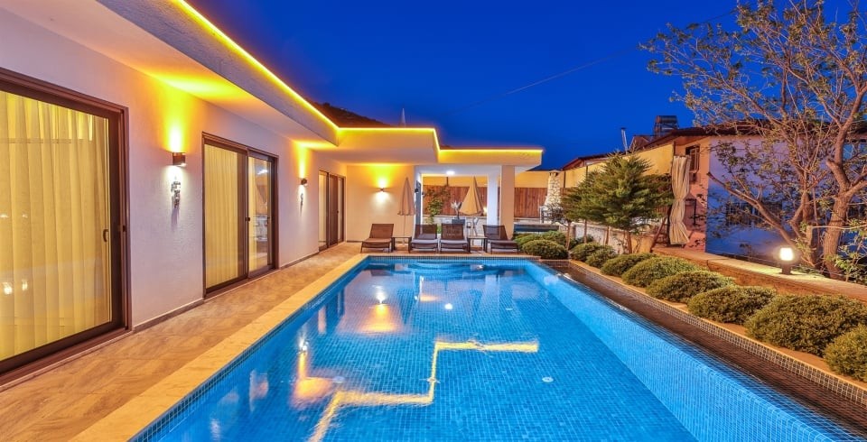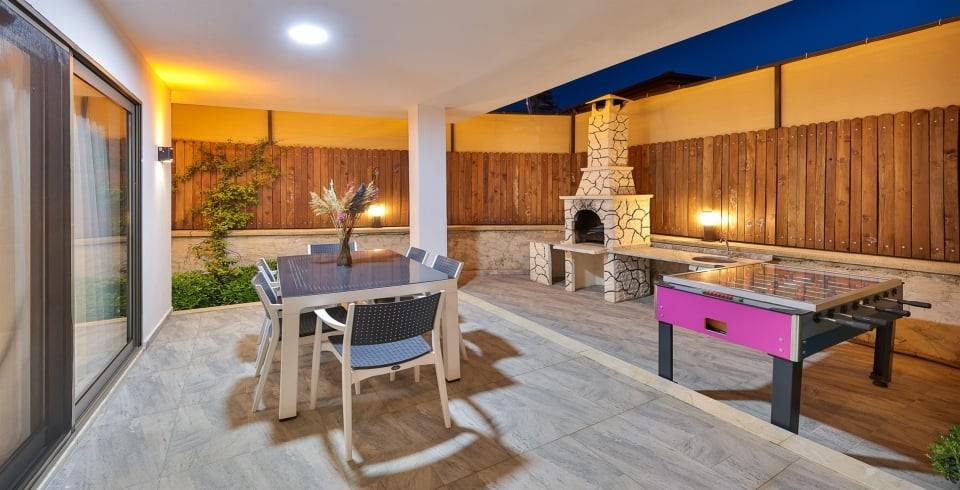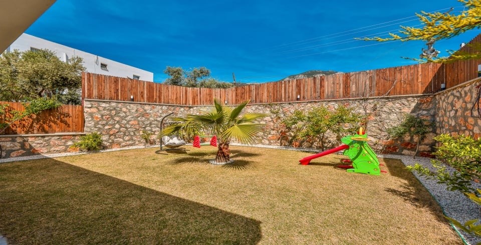 Havuz ve Bahçe : Bahçe içerisinde özel yüzme havuzu, şezlonglar, güneş şemsiyesi, salıncak, oyun parkı, langırt, yemek masası, barbekü bulunmaktadır.  Villamızın Havuz terası korunaklı olup dışarıdan gözükmemektedir.