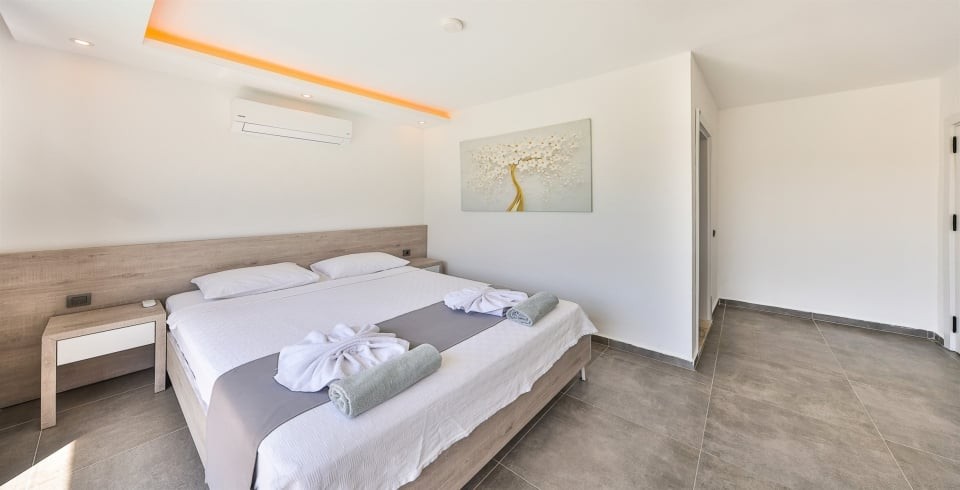 2. Yatak Odası : 1 adet çift kişilik yatak, klima, komodin, elbise dolabı, makyaj masası, banyo ve tuvalet bulunmaktadır.