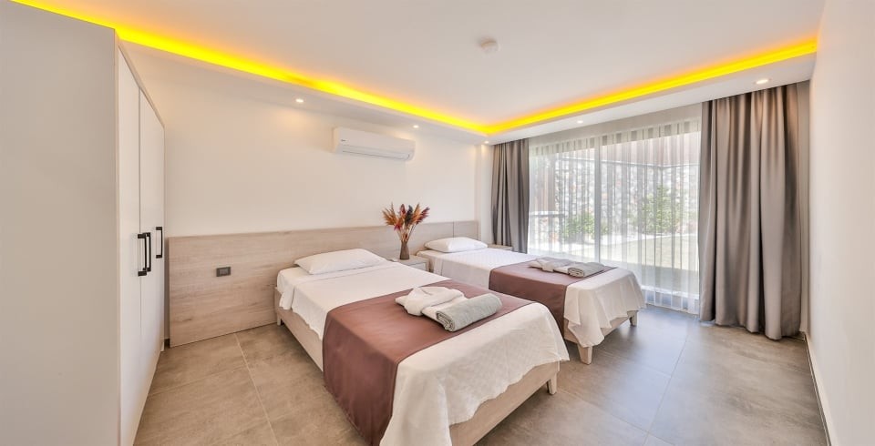 3. Yatak Odası : 2 adet tek kişilik yatak, klima, komodin, elbise dolabı, makyaj masası, banyo ve tuvalet bulunmaktadır.